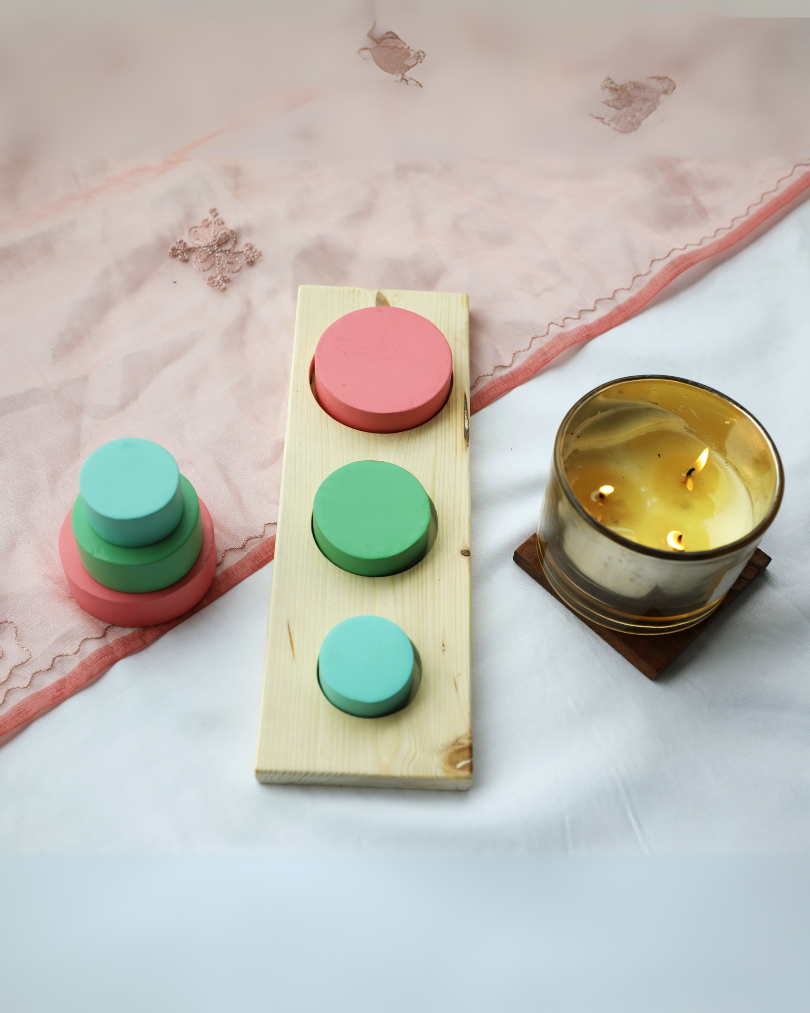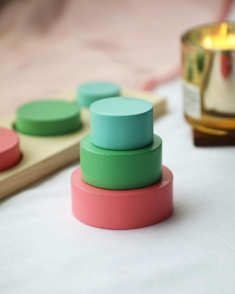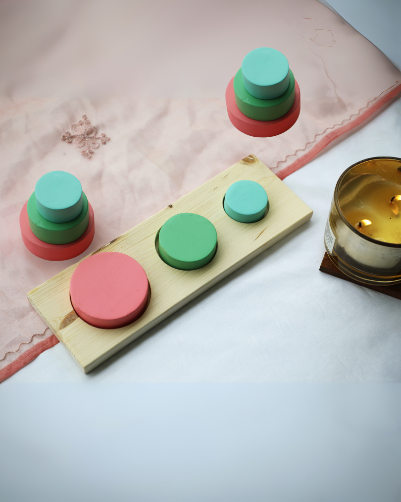 The SouLilly Circle Seriation Puzzle is an early learning wooden toy that introduces toddlers to shape recognition, size grading, and problem-solving. Designed for children aged 18+ months, this Montessori-inspired puzzle encourages spatial awareness and logical thinking through hands-on play.