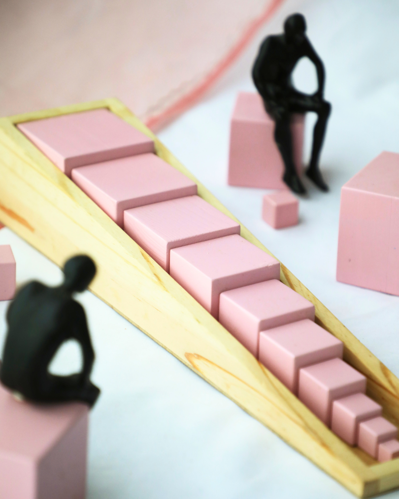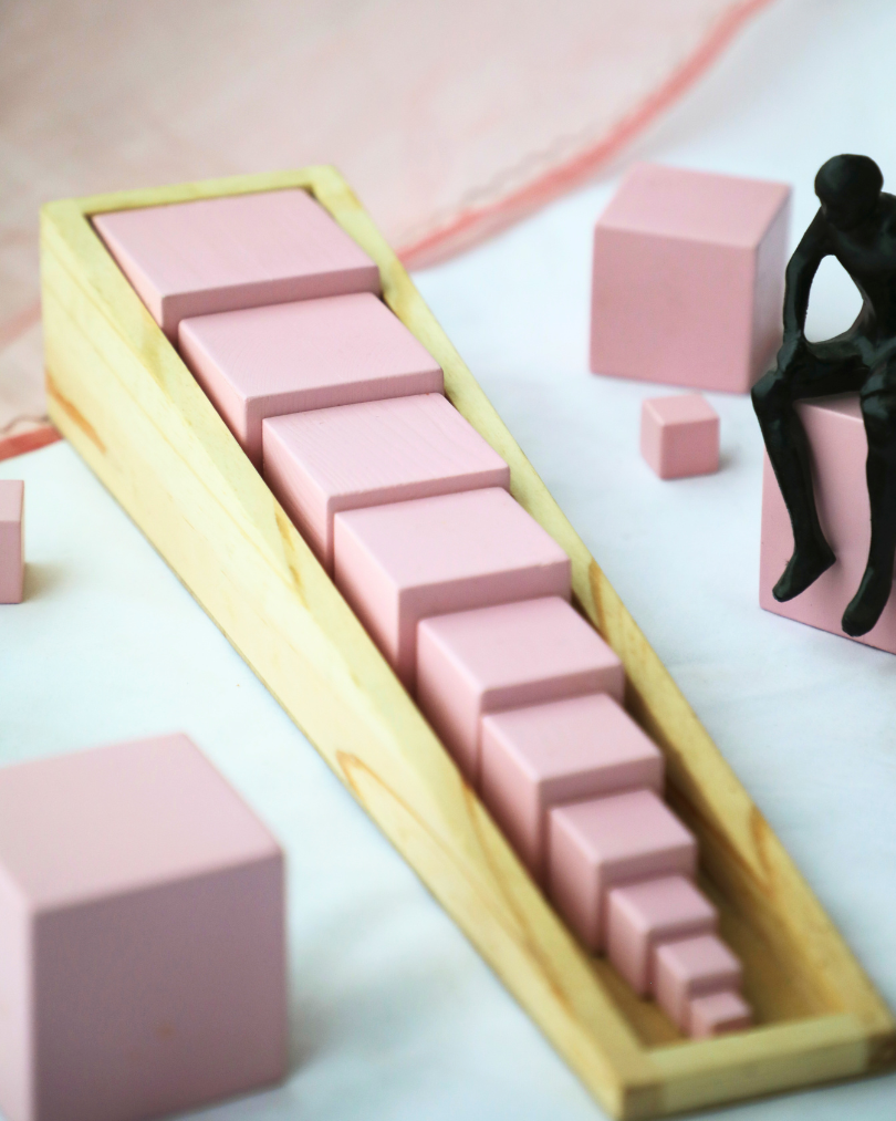 1 Set of 10 Wooden Pink Tower Cubes (Graduated Sizes)